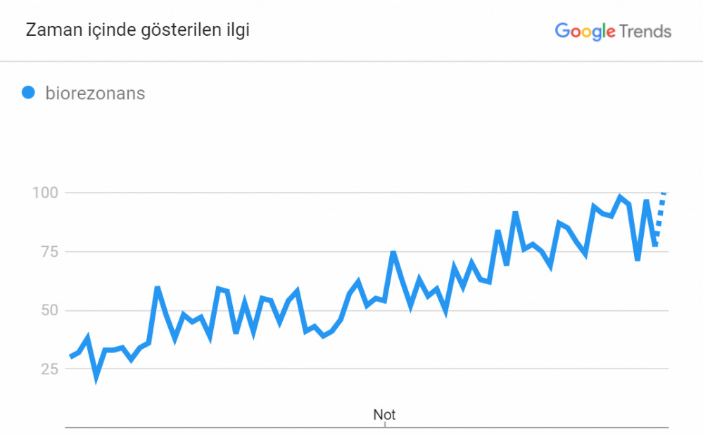 Türkiye'de de biorezonans teknolojisine gösterilen ilgili son 5 yılda hızlı bir artış göstermiştir (Kaynak: Google Trends).